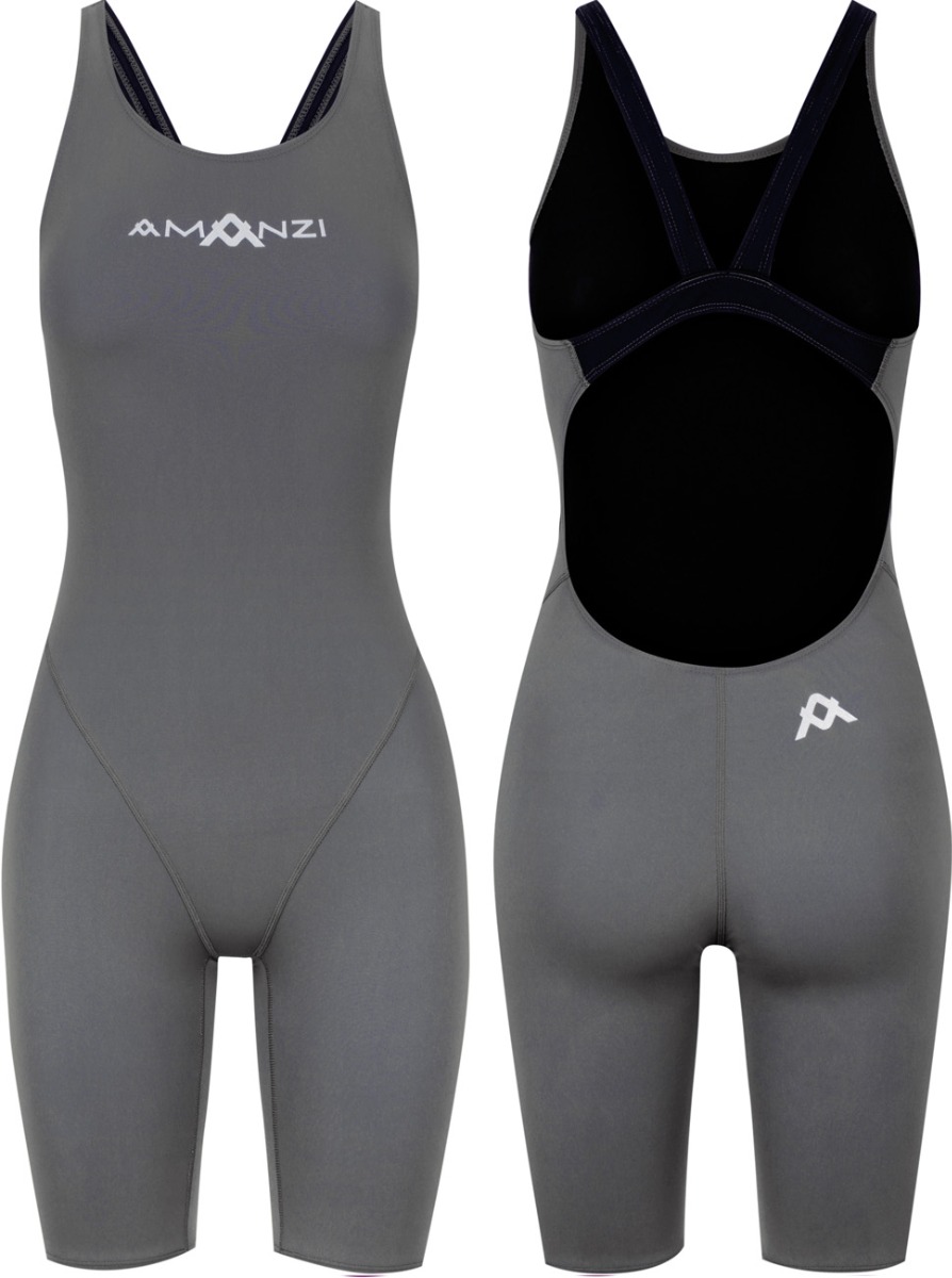 The Amanzi Kneesuit is an entry level racing swimsuit that is also suitable for training. The kneesuit has been engineered to fit the needs of competitive and active swimmers, as well as triathletes and open water swimmers. The wide shoulder straps and back band are placed between the shoulder blades allowing maximum freedom and ease of movement whilst swimming. They also provide added support to the bust area. The wide open back follows the natural contours of the body providing an ergonomic fit and superior comfort.